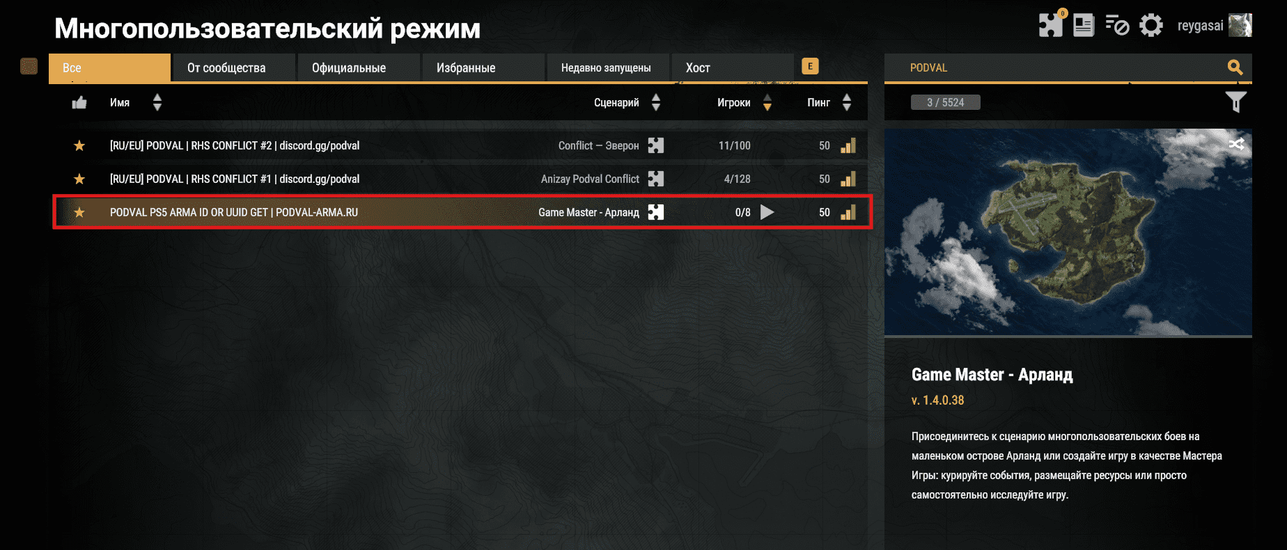 Для того чтобы получить UUID на PlayStation 5 (PS5) вам необходимо в списке серверов найти сервер PODVAL PS5 ARMA ID OR UUID GET | PODVAL-ARMA.RU и зайти на него. Если у вас данный сервер не отображается, то проверьте настройки кроссплатформы (она должна быть включена)